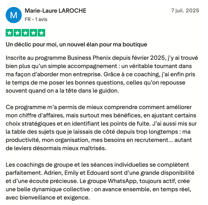 Dirigeant d'entreprises depuis plus de 13 ans et des semaines à 70 h de travail, Adrien a créé le Système Business Phénix™ : une méthode simple pour augmenter la marge de 20 à 40 % sans pub ni refonte complète.